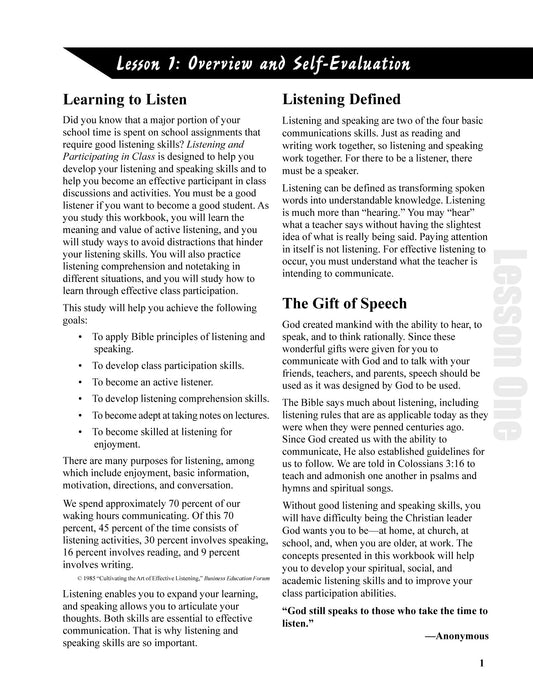 JH Listening & Participating in Class Student Workbook